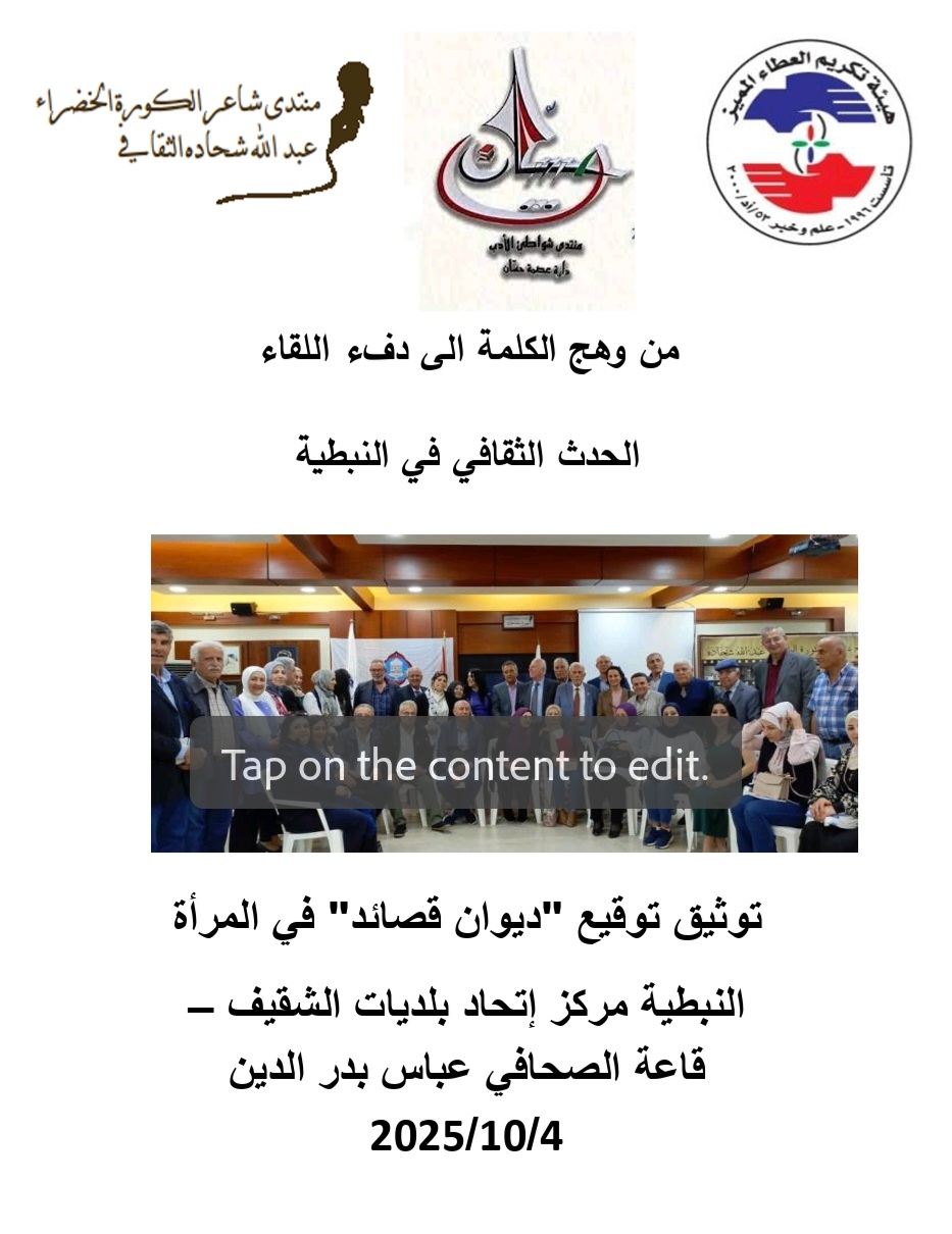 كتاب من وهج الكلمة الى دفء اللقاء ( فعاليات التوقيع الثالث لديوان قصائد في المرأة في النبطية)